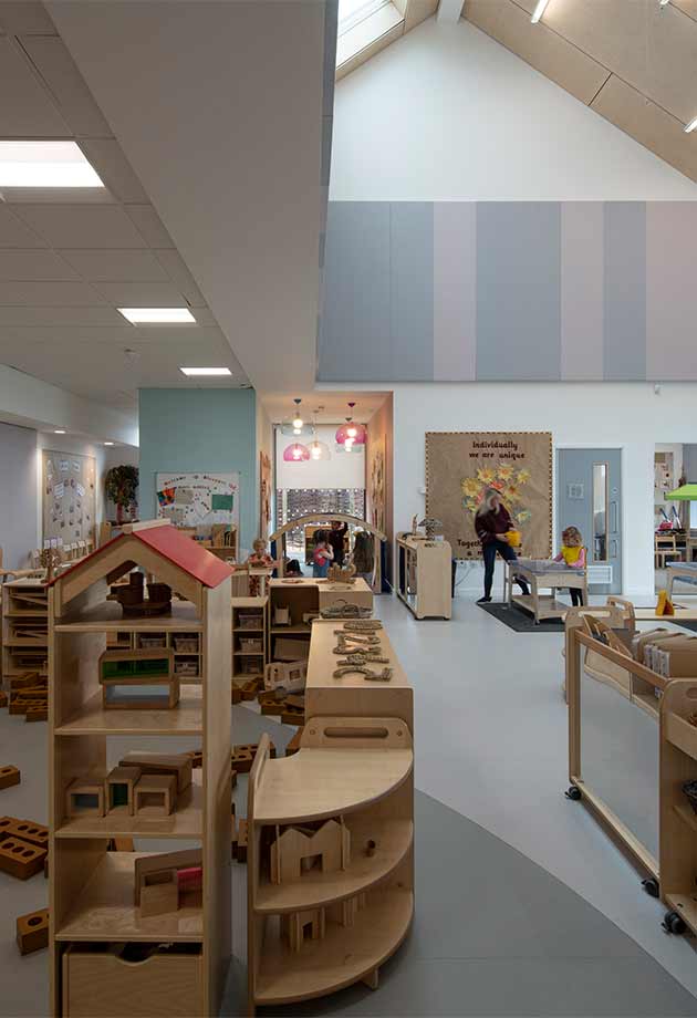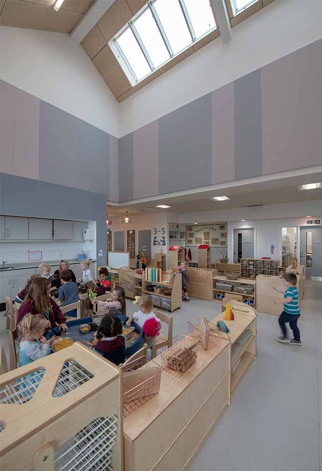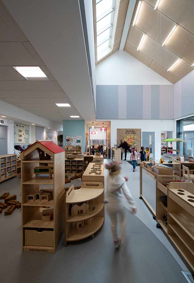Die Kinder der Tagesstätte Glenpark profitieren von der richtigen Menge Tageslicht dank VELUX Modular Skylights mit passenden Sonnenschutz-Rollos